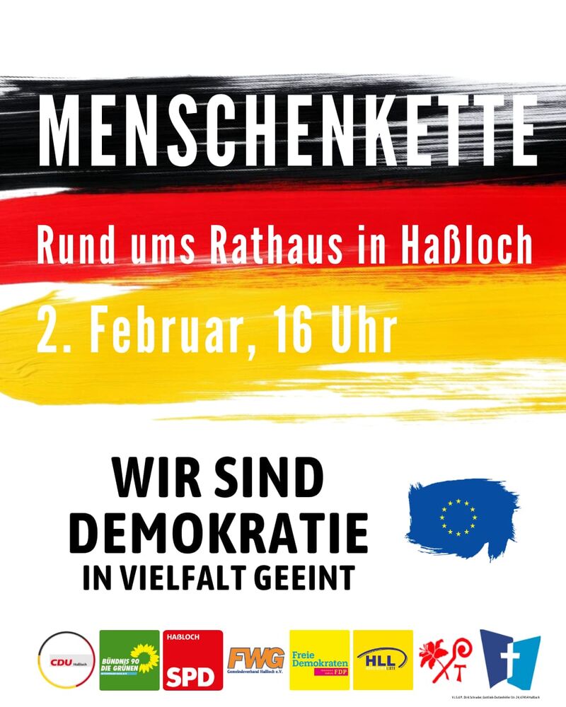 Diese Veranstaltung wird von einem breiten Bündnis organisiert: SPD, CDU, Bündnis 90/Die Grünen, FWG, FDP, den Omas gegen rechts sowie den Haßlocher Kirchengemeinden. Gemeinsam stehen wir für eine weltoffene und solidarische Gesellschaft.